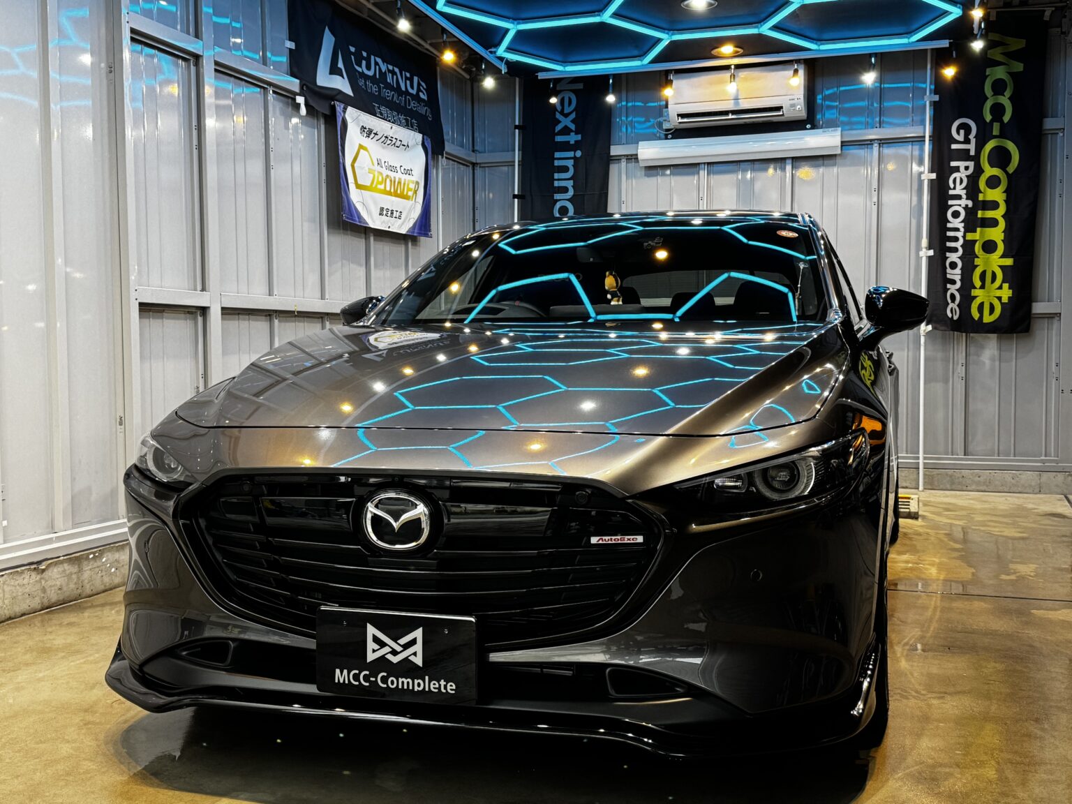 秋田でカーコーティング|北海道よりご来店、MAZDA3 FASTBACKに鏡面研磨・ガラスコーティング施行!
